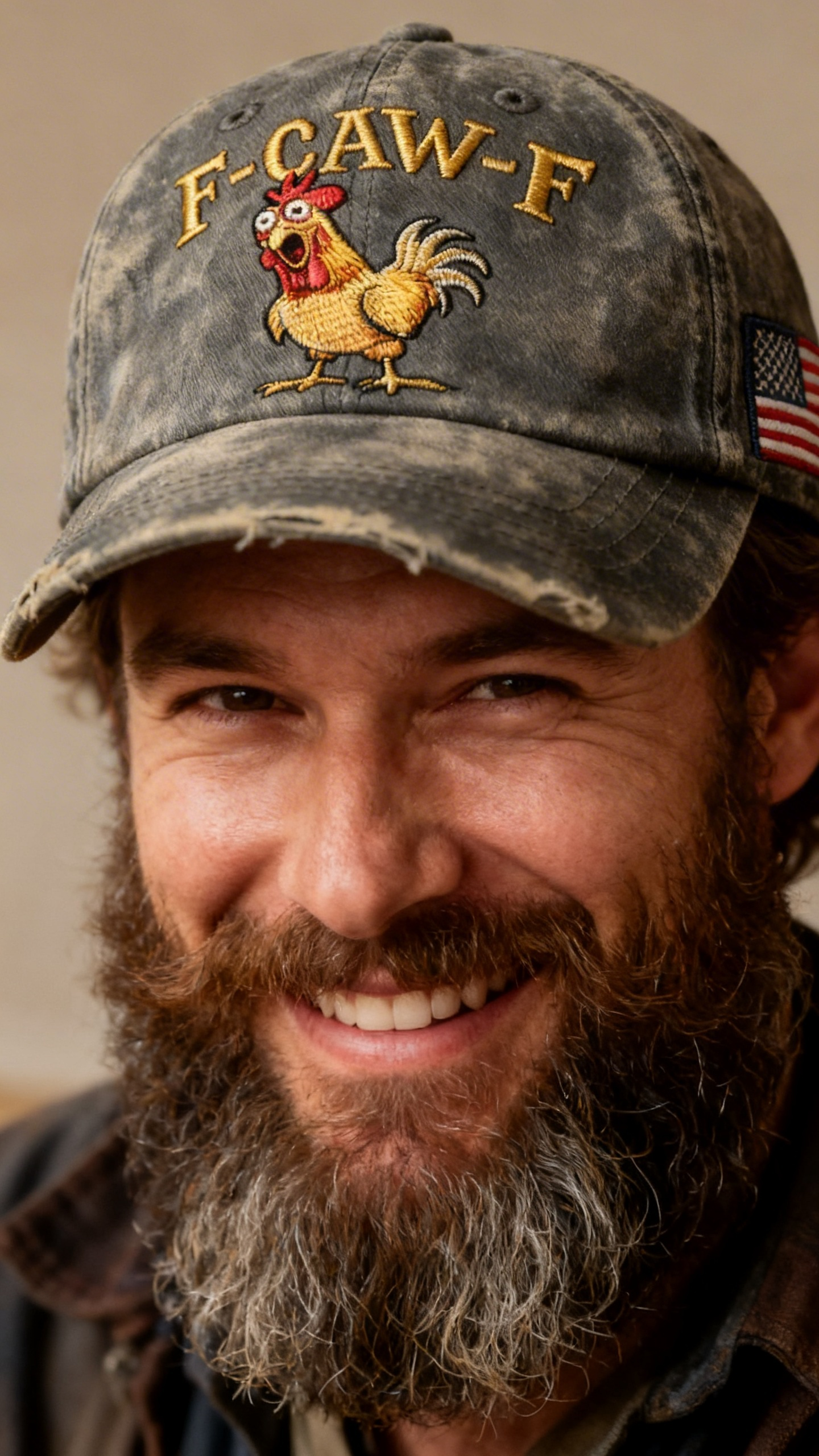 🧢 Vintage Rooster Embroidered Baseball Cap – “F-CAW-F” Edition