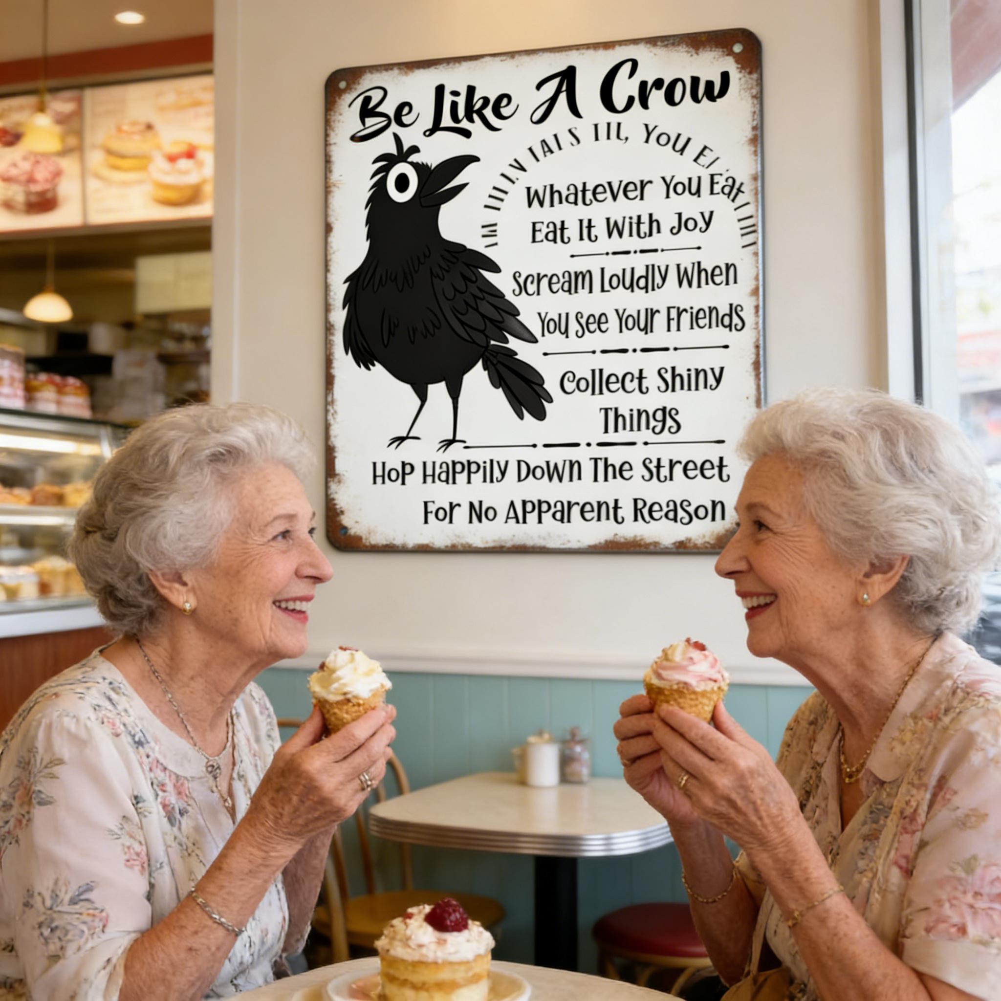 This “Be Like A Crow” vintage metal sign is a playful reminder to enjoy life the crow way.