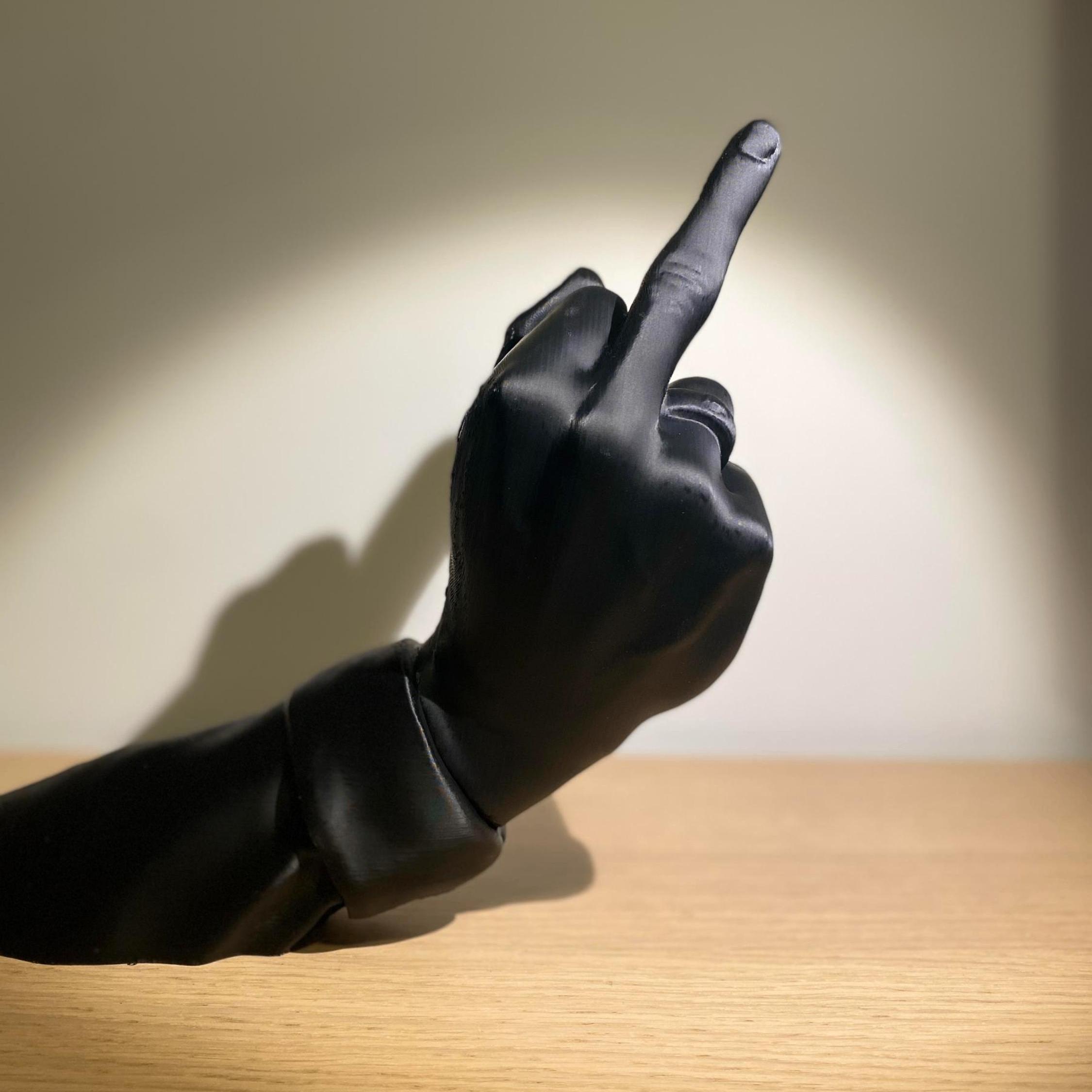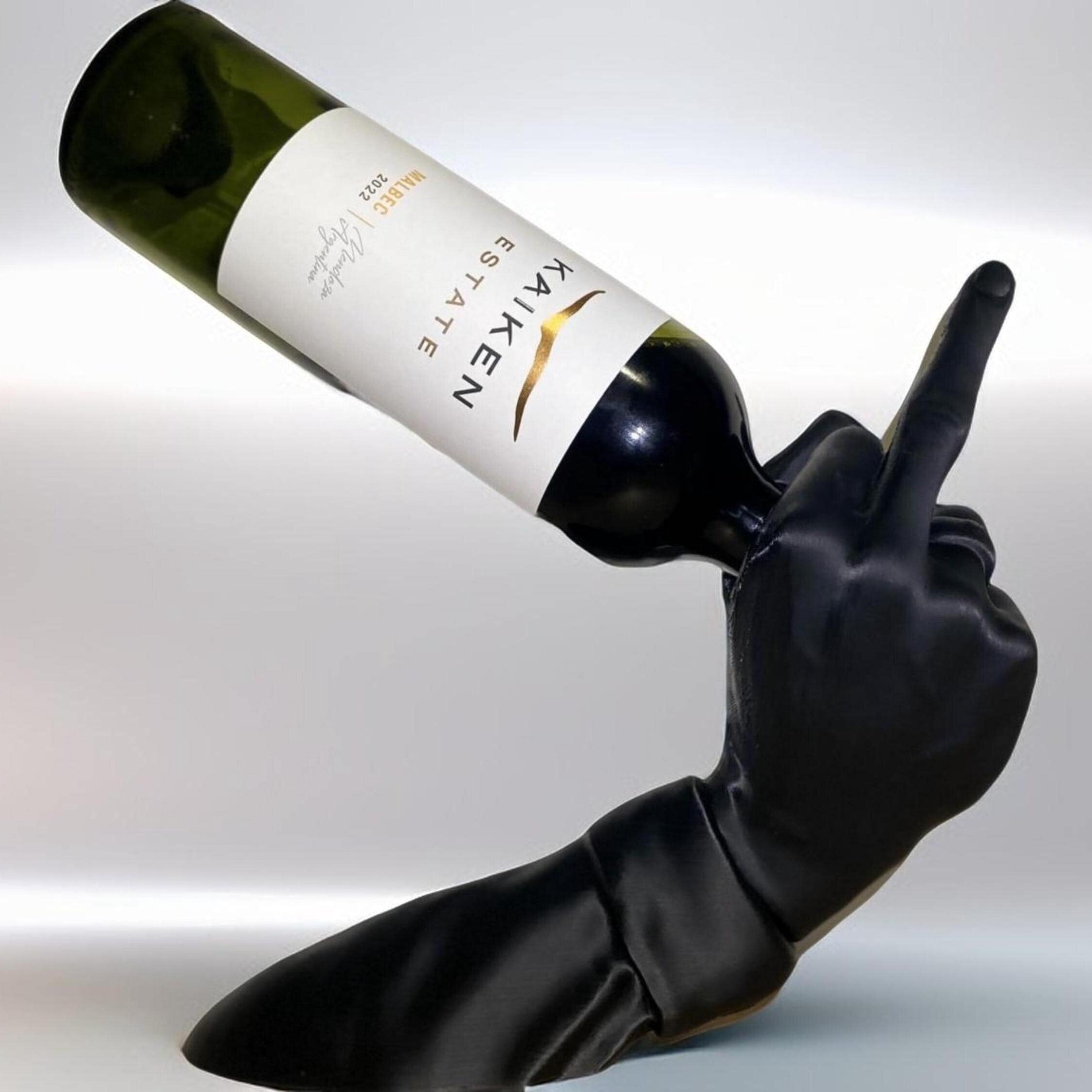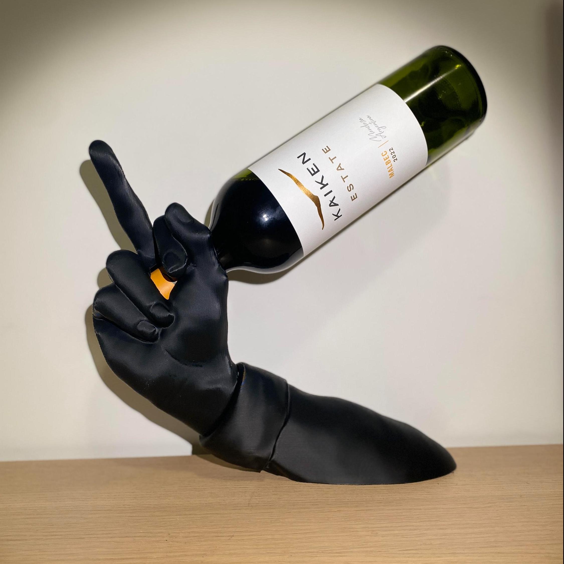 🍷A detailed hand sculpture featuring a middle finger gesture, crafted to securely hold a wine bottle.